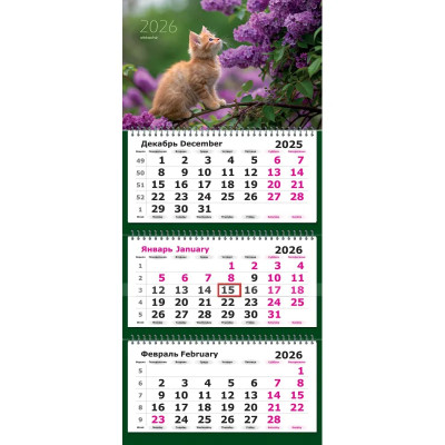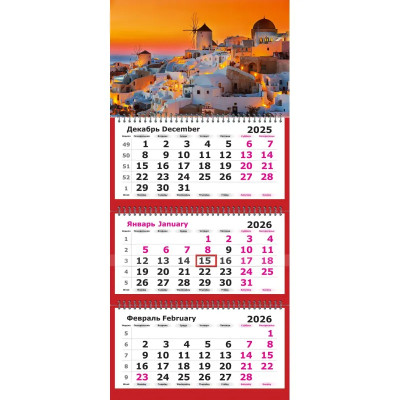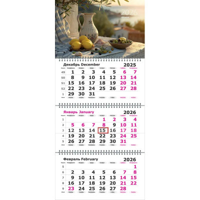 Календарь настенный 3-х блочный 2026 Attache Трио Стандарт,Рис.офис,305х675