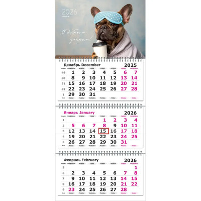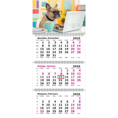 Календарь настенный 3-х блочный 2026 Attache Трио Стандарт, Пес,305х675,80г