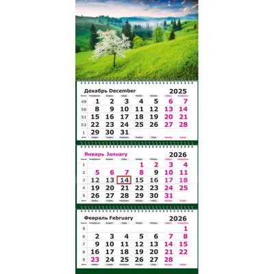 Календарь настенный 3-х блочный 2026 Attache Трио Стандарт,Дер.вода,305х675