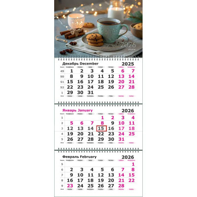 Календарь настенный 3-х блочный 2026 Attache, 305х675, Печенье, 80г