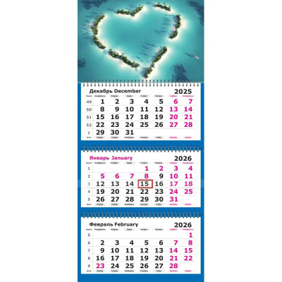 Календарь настенный 3-х блочный 2026 Attache, 305х675, Сердце океана, 80г