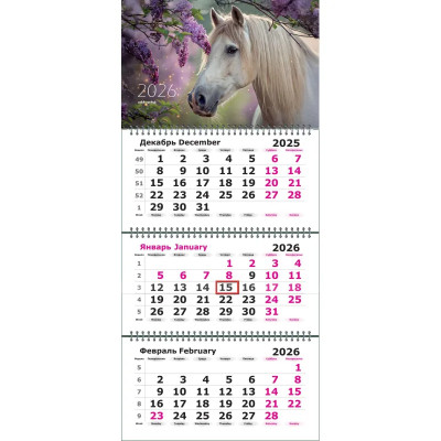 Календарь настенный 3-х блочный 2026 Attache, 305х675, Белая лошадь, 80г