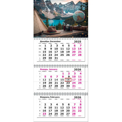 Календарь настенный 3-х блочный 2026 Attache Премиум,Путешествия,330х705,80