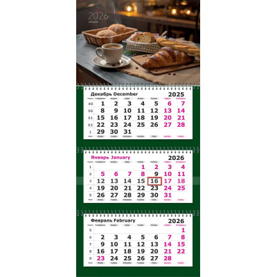 Календарь настенный 3-х блочный 2026 Attache, 305х675, Завтрак, 80г