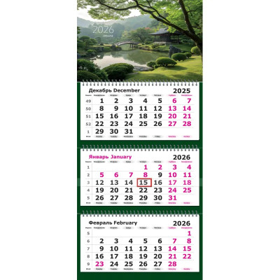 Календарь настенный 3-х блочный 2026 Attache Трио Стандарт, Парки, 305х675