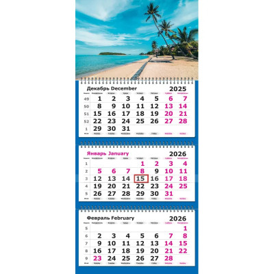 Календарь настенный 3-х блочный 2026 Attache Трио Стандарт, Тропики,305х675