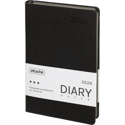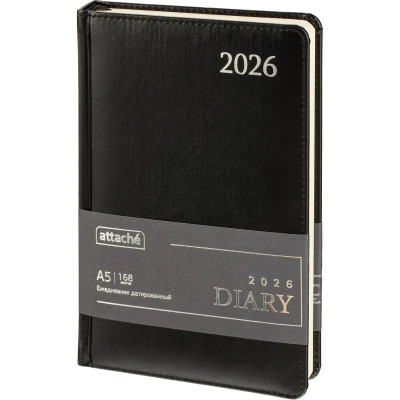 Ежедневник датированный 2026 Attache А5, 168л, 138x213мм, под кожу, черный