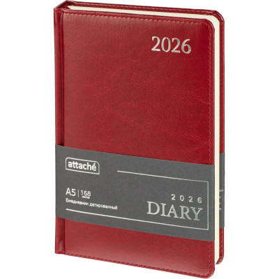 Ежедневник датированный 2026 Attache А5, 168л, 138x213мм, под кожу бордовый