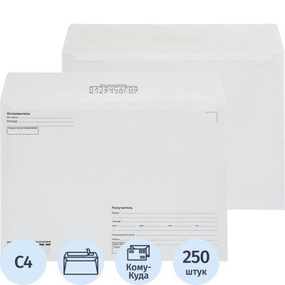 Конверт белый С4 стрип 229х324 90г КОМУС 250шт/ уп
