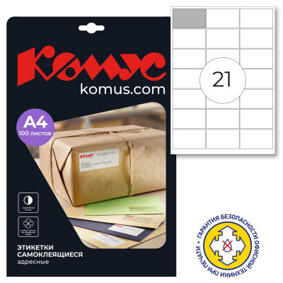 Этикетки самоклеящиеся Адресные бел,63.5х38.1мм./ 21шт на лис