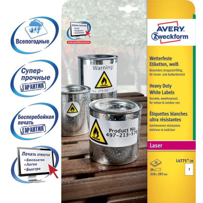 Этикетки самоклеящиеся L4775-20 Всепогодные,бел,210х297мм,L+K+CL,20шт/уп