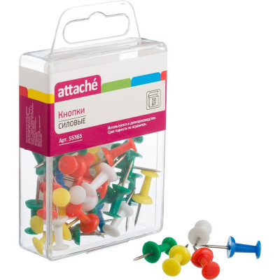 Кнопки силовые д/пробковых досок ATTACHE,пластиковая шляпка,ассорти,50шт/уп