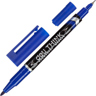 Маркер перманентный двусторонний Deli Think 0,5/1 мм синий EU211-BL
