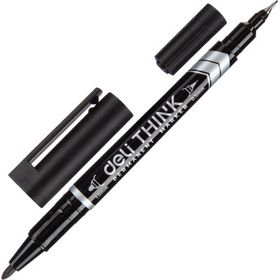 Маркер перманентный двусторонний Deli Think 0,5/1 мм черный EU211-BK