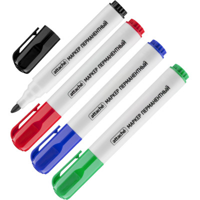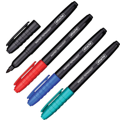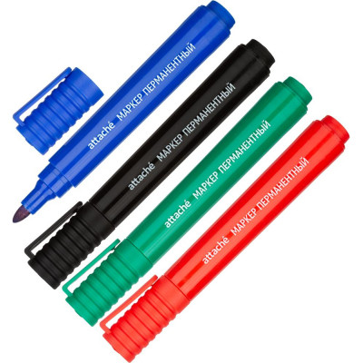 Набор маркеров перманентных Attache (син.,зел.,красн.,черн.)корпус в ассорт