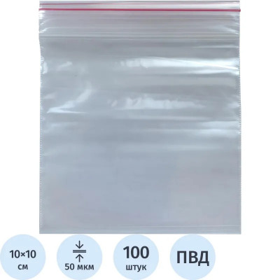 Пакет с замком (Zip Lock) 10х10 см, 50 мкм, 100 шт/уп