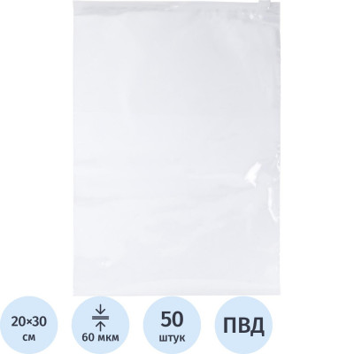 Пакет с замком слайдер EVA прозрачный 60 мкм 20х30, 50 шт/уп