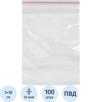 Пакет с замком (Zip Lock) 7х10 см, 32 мкм, 100 шт/уп