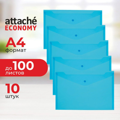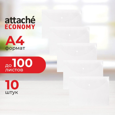 Папка-конверт на кнопке Attache Economy А4 100мкм прозрачный 10шт в уп