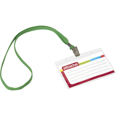 Бейдж Attache 120х87мм (113х70мм)гориз.,металл зажим,тесьма зелен. 10шт/уп