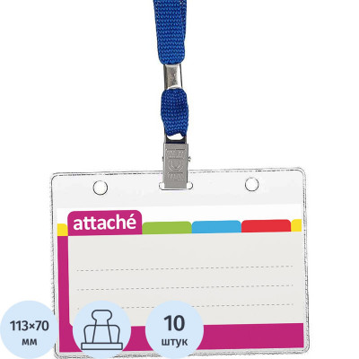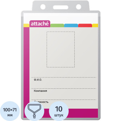 Бейдж 107х83мм Attache д/карт 100х71мм тесьма '1016, 10 шт