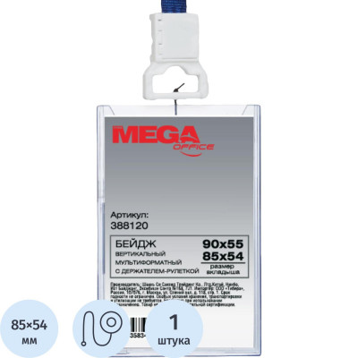 Бейдж Promega office вертикальный с рулеткой, разм вклад 54х85