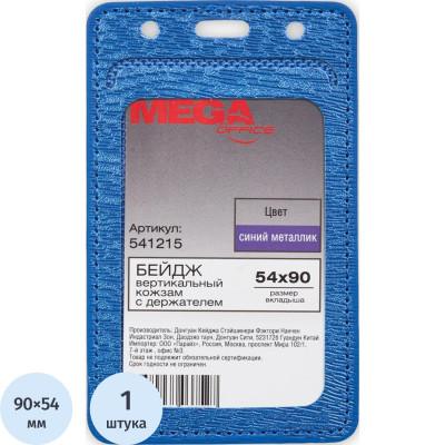 Бейдж Promega office вертик. 54х90, синий металлик, PU, Т-814V