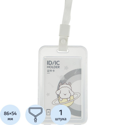 Бейдж Deli 64804 вертик.,на шнурке с клипом., вкладыш: 54x86мм, белый, 1 шт
