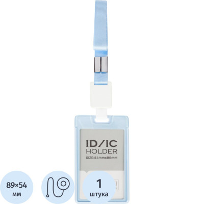 Бейдж Deli 64803 вертик.,с держат.,вкладыш:89x54мм,влагозащ.,голубой,блист