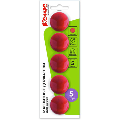 Магнитный держатель для досок Комус 30 мм, 5шт/уп. 3217 красный