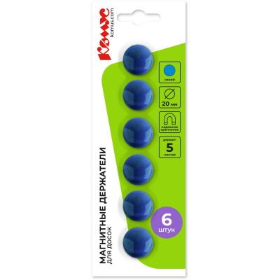 Магнитный держатель для досок Комус 20 мм, 6шт/уп. 3216 синий