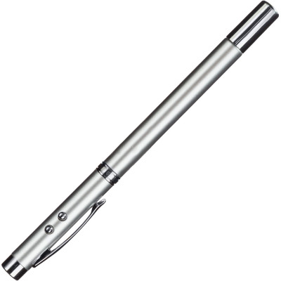 Указка лазер.ручка шарик. 3в1 серебр.+ красн.лазер+фонарь LH612СР син.
