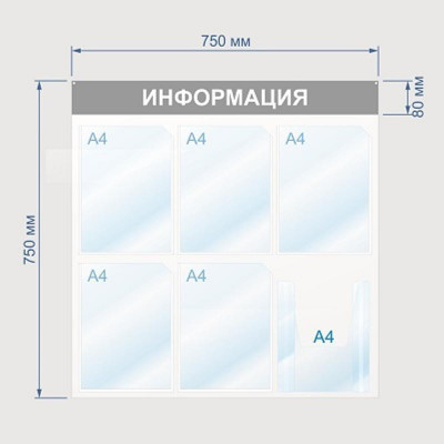 Информационный стенд Информация, 6 отд., 750х750, синий, настенный