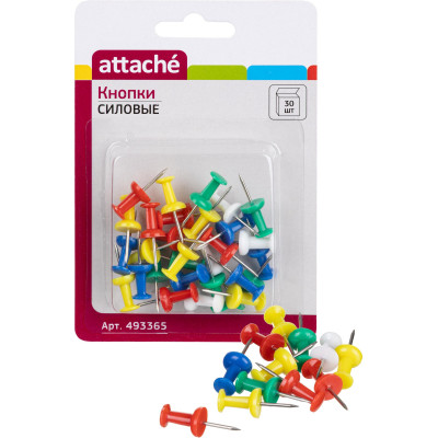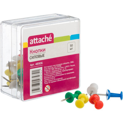 Кнопки силовые д/пробковых досок ATTACHE,пластиковая шляпка,ассорти,50шт/уп