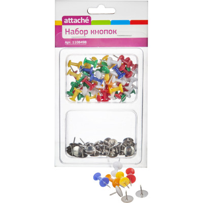 Кнопки канцелярские Attache 12мм, пластиковая шляпка, цветные 50шт пласт.уп