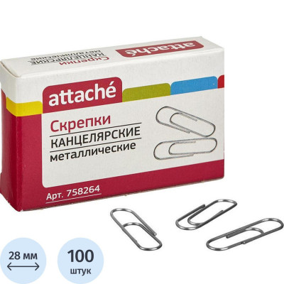 Скрепки Attache металлические без. покрытия,28 мм, негофрирован.,100шт/уп