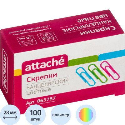 Скрепки Attache с полимерным покрытием,28 мм,разноцветные, 100 шт/уп