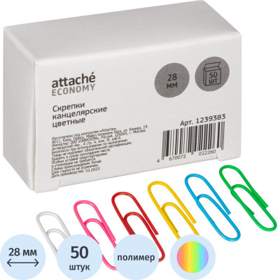 Скрепки Attache Economy с полимерн. покрытием,28 мм,разноцветные, 50 шт/уп