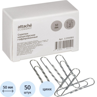 Скрепки Attache Economy оцинкованные, 50 мм, гофрированные, 50 шт/уп