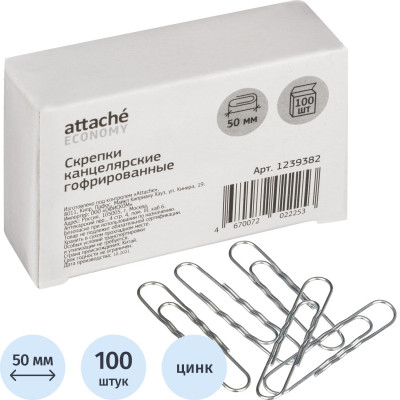 Скрепки Attache Economy оцинкованные, 50 мм, гофрированные, 100 шт/уп