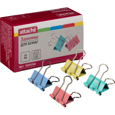 Зажимы для бумаг цветные 25мм 12шт/уп Attache, в картонной коробке