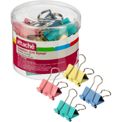 Зажимы для бумаг ассорти цветн (19мм,25мм,32мм), 12шт/уп Attache,пласт.бок