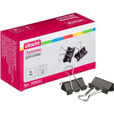 Зажимы для бумаг 51мм 12шт/уп Attache, в картонной коробке