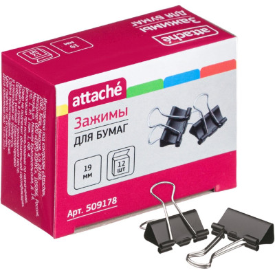 Зажимы для бумаг 19мм Attache 12шт/уп Attache, в ка ртонной коробке