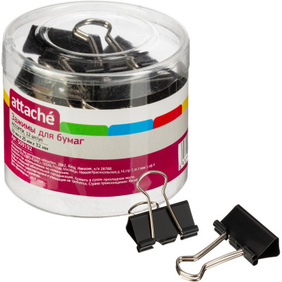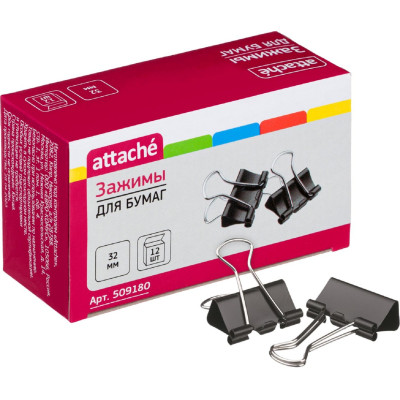 Зажимы для бумаг 32мм 12шт/уп Attache, в картонной коробке