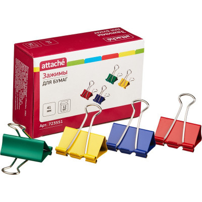 Зажимы для бумаг Attache, 41 мм, 12 шт., цветные, в карт.коробке