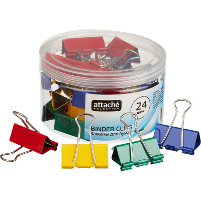 Зажимы для бумаг Attache Selection, 41мм, 24 шт, цветные, пласт.уп