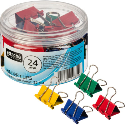 Зажимы для бумаг Attache Selection, 32мм, 24 шт, цветные, пласт.уп