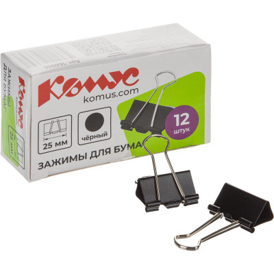 Зажимы для бумаг 25мм 12шт./уп.Комус, в картонной коробке