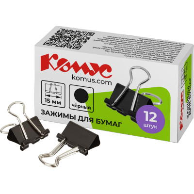Зажимы для бумаг 15мм 12шт./уп. Комус, в картонной коробке